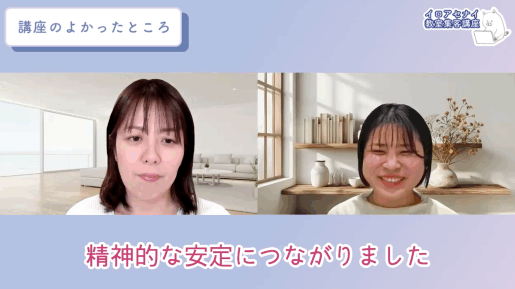 ーイロアセナイ教室集客講座に入って、良かったこととか学びになったこととか何かありますか?