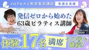 ー今日は単価 3,500円のレッスンで「月商1万円」とか言っていたところで、コースを作って、それがもうすでに4件売れていて、まだまだ売れそうな感じで体験会も10名埋まっている先生に来ていただきました。