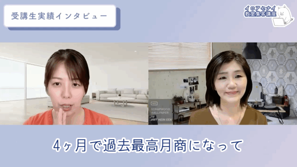 ー今日はうちに入って4ヶ月で過去最高月商になって、1年後に講座もちゃんと作れて売り上げが200万となった先生にお話を聞いていきたいと思います。
