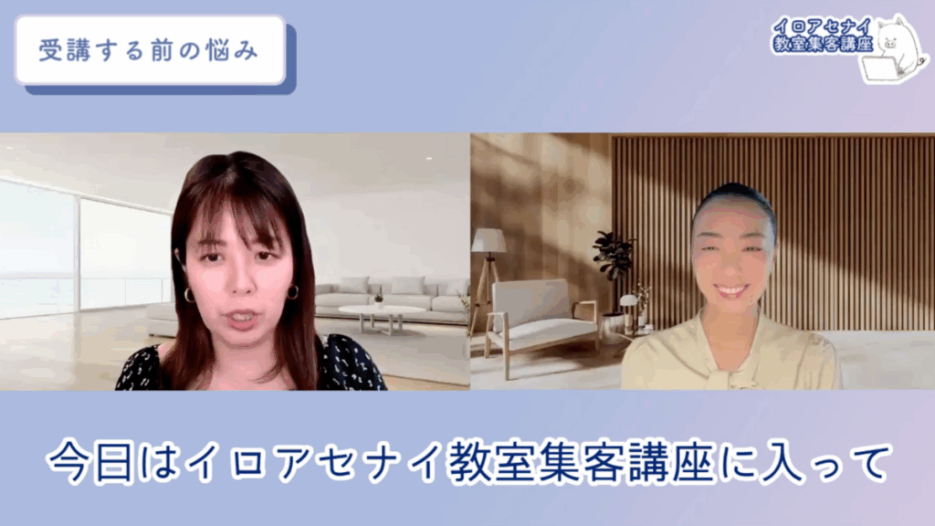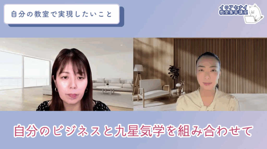ー今日はイロアセナイ教室集客講座に入って年商がもう800万円近くなっていて、12月までにもっと売れちゃうんじゃないかという占いの先生に来ていただいています。